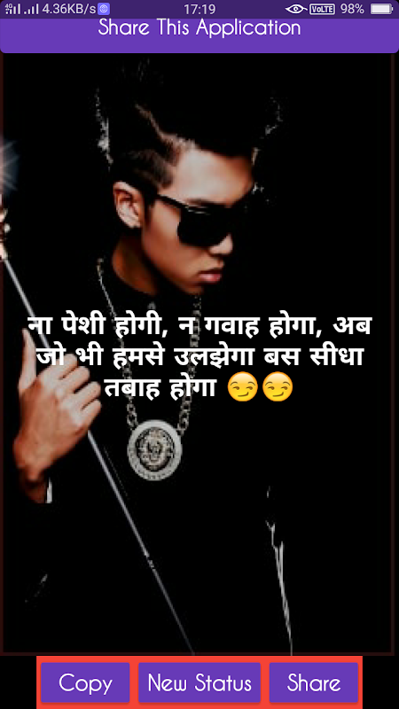 Bhaigiri Status Shayari - Hello friends, welcome to our new App, in our new Apps, you will find Hindi Bhavigiri and Dadaji Vrishti filled with Hindi status. If you search on the internet, Bhaigiri status, Dadagiri status or Dabang status, then you are searching for a status filled with such a attitude in which you want to see your attitude, then your search ends at our post, it is like this. Hindi status will be available to anyone who can upload to your facebook, whatsapp or any site, friends, if you like our posts, then definitely share it with your friends.