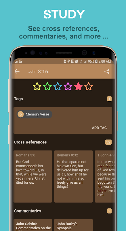 -圣经注释可从热门作家获得:马修·亨利(Matthew Henry),司布真(Spurgeon),约翰·加尔文(John Calvin)等。