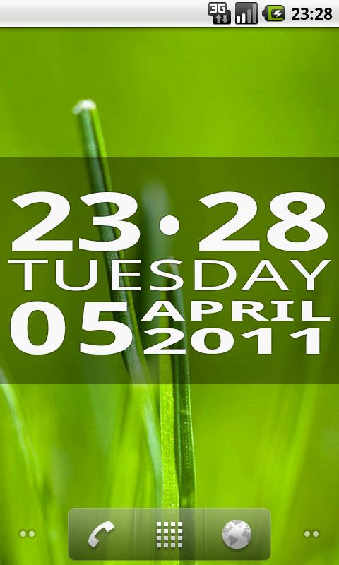 Bigger Clock Widget is a bigger version of Big Clock. This digital clock and date widget occupied a size of 4x2. App launcher for your favorite apps (like alarm clock, calendar). Support device language. This widget shows the dates always in the square. The weekday, the month and the other data are stretched accordingly. Compare it with the other clock widget.