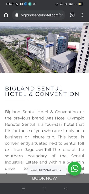 Bigland Sentul Hotel & Convention or the previous brand was Hotel Olympic Renotel Sentul is a four-star hotel that fits for those of you who are simply on a business or leisure trip. This hotel is conveniently situated next to Sentul Toll exit from Jagorawi Toll The road at the southern boundary of the Sentul Industrial Estate and within a 5-10 min drive to Sentul International Convention Center. Bigland Sentul Hotel & Convention is the First Hotel that provides a Rooftop Swimming Pool facility in Bogor, along with diverse facilities such as a Grand Ballroom, 12 meeting rooms, an all-day dining Restaurant, Cozy Cafe, Business Corner, Kids Corner, Fitness Center, and an Executive Lounge. The Hotel is also very convenient for Business and Leisure destinations especially the Family market on the weekend as its located very close to Bogor (mountain) which provides a good climate & fresh air. Be sure to check out popular waterfalls like Leuwi Hejo Waterfall and Bidadari Waterfall, which are all a short distance from the hotel. We’re sure you’ll enjoy your stay at Bigland Sentul Hotel & Convention as you experience all of the things Sentul has to offer.