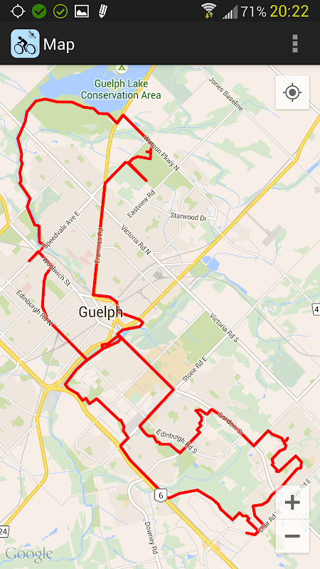有应用程序负载在那里为Android跟踪骑自行车,运行等物理活动,所以为什么要创建一个新的?我写了自行车跟踪,因为我发现,所有其他纤夫在这对我很重要的关键领域表现疲弱。我不关心社交分享我的路线,我也没有做自己的心脏速率监视器和其他支持蓝牙的连接配件。我没有去骑车训练什么,我只是出去享受自己,我真正想要的是一个应用程序,可以追踪我的游乐设施,并提供了从GPX格式转换成谷歌地球友好的KML文件,而不需要连接到在线服务。事实上,应用程序并不需要互联网连接,除非你选择显示的地图。