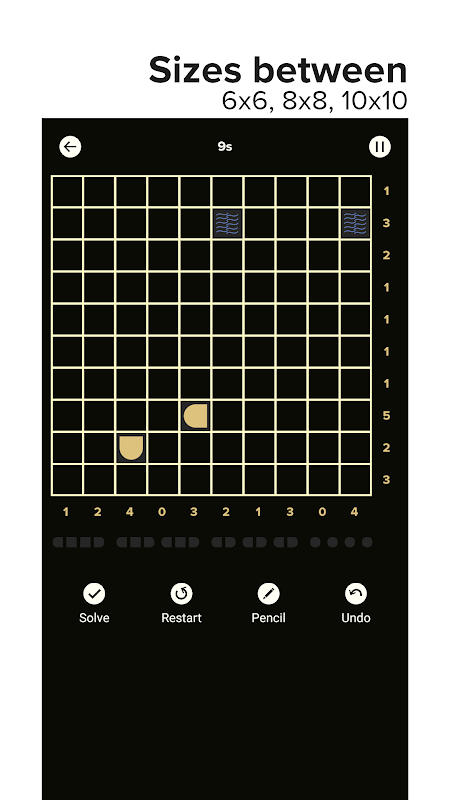 Bimaru Puzzle - Randomized will generate new puzzles every time you start a new game so you will never face the same puzzle twice (unless of course you have hit the inhuman limit!)
