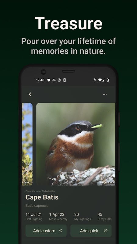 使用个性化列表跟踪您的观鸟之旅。按物种、位置或日期对您的发现进行排序和分类,以方便参考。 Bïndo 就像一本触手可及的数字观鸟日记。