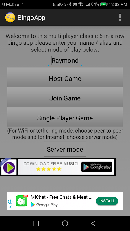 这是一款通过Wi-Fi/网络共享/局域网/互联网玩的多人经典宾果游戏