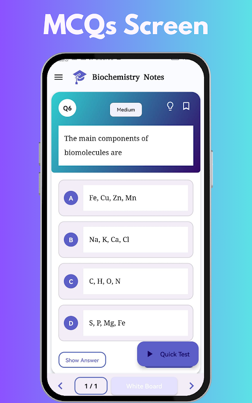 立即获取包含选择题和测验的生物化学完整课程大纲书籍!随时随地开始学习、练习和复习。