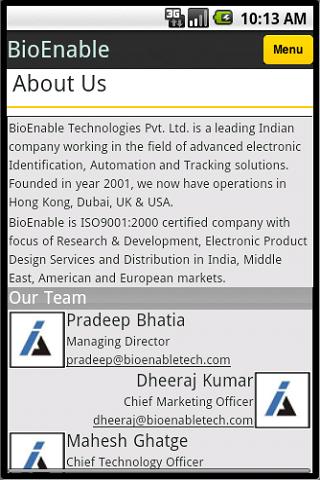 BioEnable is a leading Solution Provider company working in the field of advanced electronic Identification (fingerprint, iris, face recognition), Automation & Tracking solutions (gps and RFID based personal & vehicle tracking)with focus on Research & Development on Biometric, GPS, GPRS, RFID, Desktop, Web Solutions.