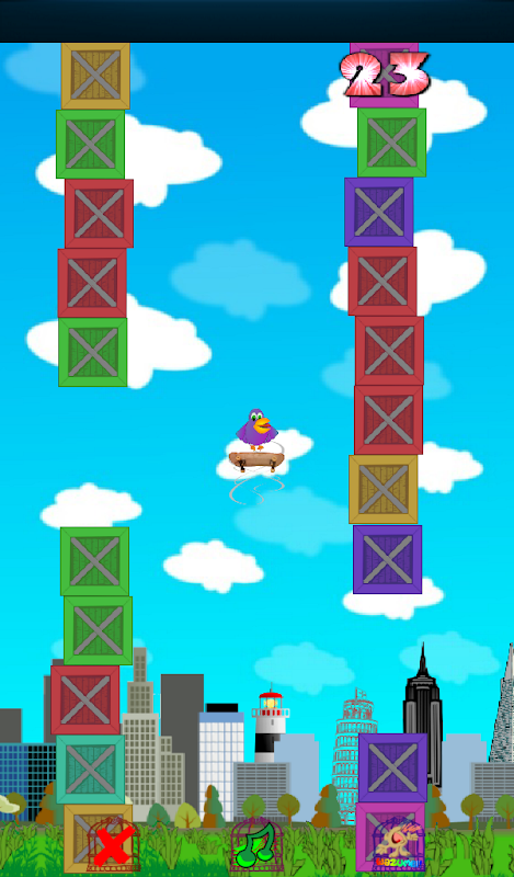 Fly Bird though the city and avoid the crates coming at you.
