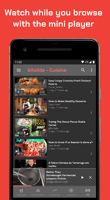 * Browse videos, channels and profiles