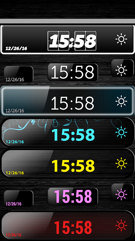 ▶黑色数字时钟让您从十个设计,皮肤,手和数字中选择。