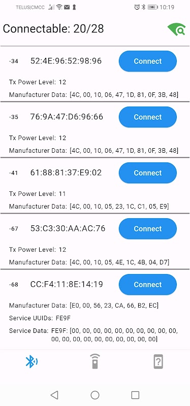 扫描可连接的 BLE 设备,并根据接收信号强度指示 (RSSI) 在排序列表中查看它们。