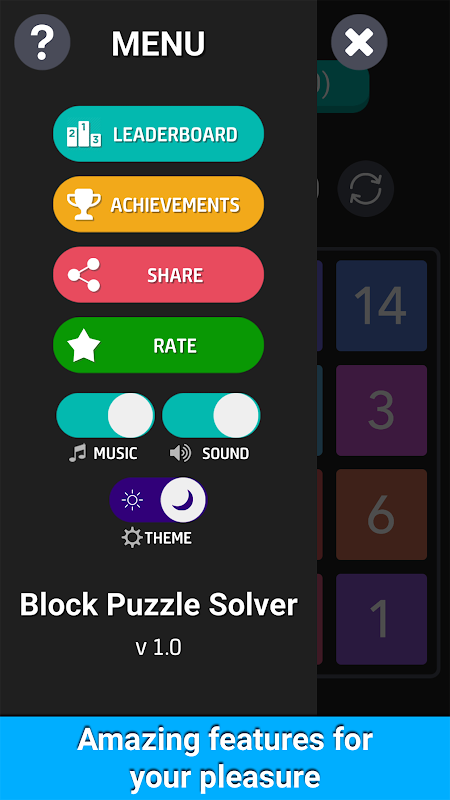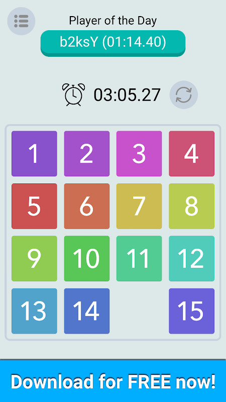 Block Puzzle Solver is a puzzle game for all ages. The goal is to arrange the randomly placed tiles in order from 1 to 15. The controls are very easy. You just have to tap a tile to swap it with the blank tile. You can play it anywhere, anytime. Try to solve the puzzle as fast as you can and top the leaderboard. Do you have what it takes to be the top player of the day?