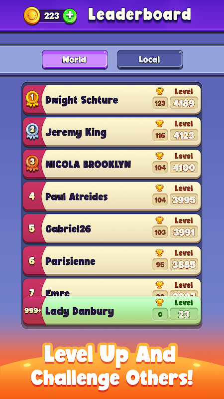 排行榜 - 爬上排行榜,向世界各地的朋友展示您的掌握情况。