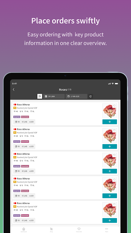 借助适用于手机和平板电脑的 Bloom Direct 应用程序,您始终可以轻松获得各种新鲜产品。您还可以在任何地点查看、补充或创建订单:在路上、旅行时、商店里或在家的沙发上。 Bloom Direct 应用程序提供花店或批发商快速轻松管理库存所需的一切。
