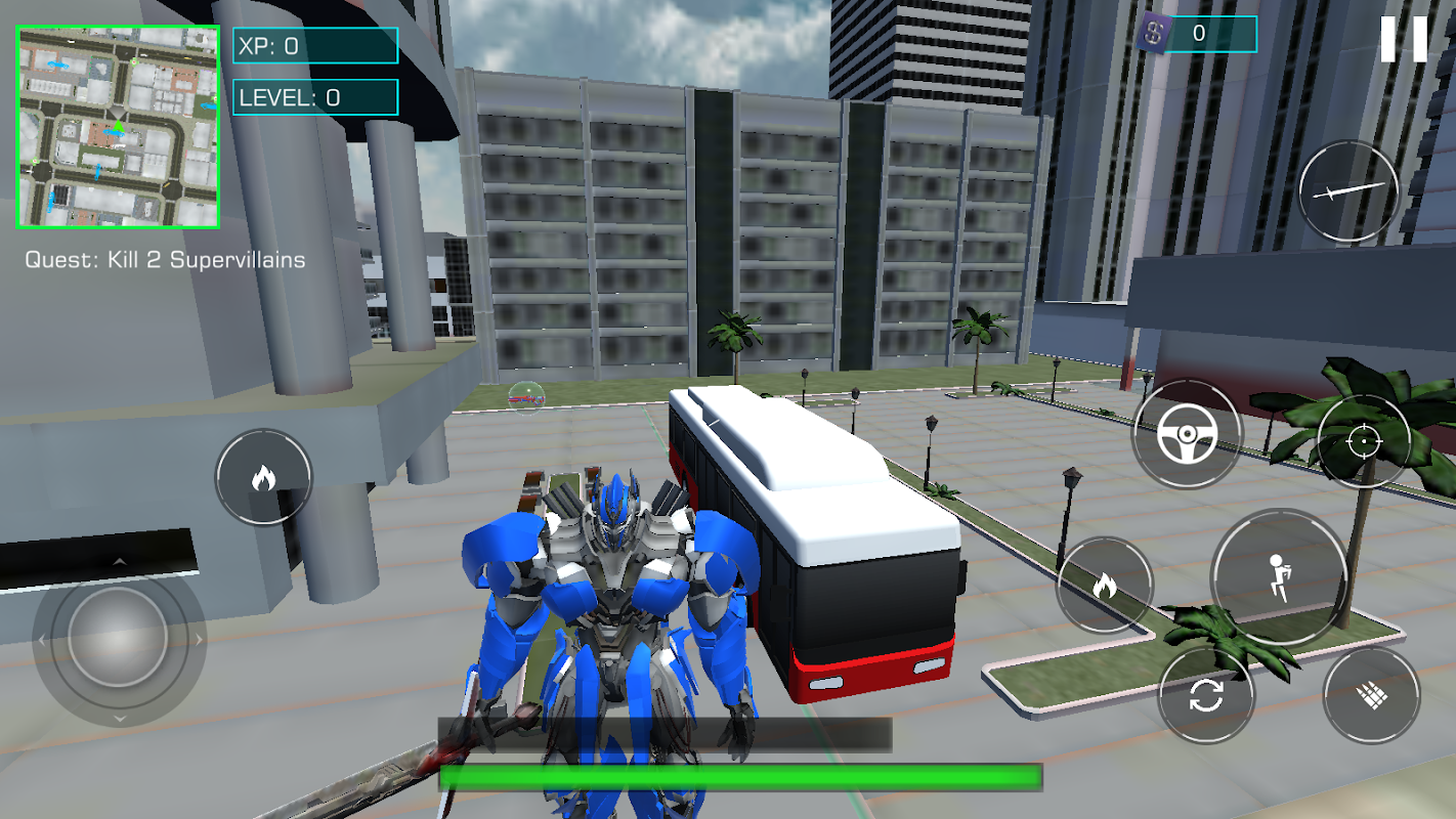 by roaming in the city you can find different cars trucks buses to transform to and you can eather chill and have a good time in the city or ran over the supervillains andsave the city .