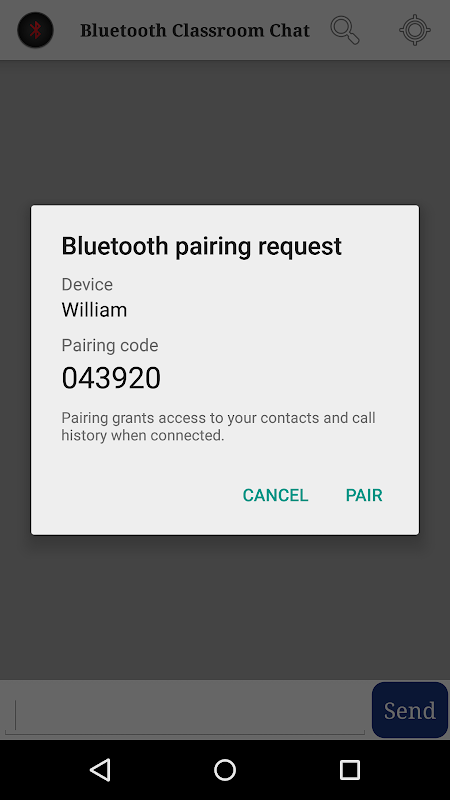 Bluetooth Classroom Chat is a simple application for chatting inside a college premises,classroom , library etc. It uses a simple bluetooth connection to chat with users.