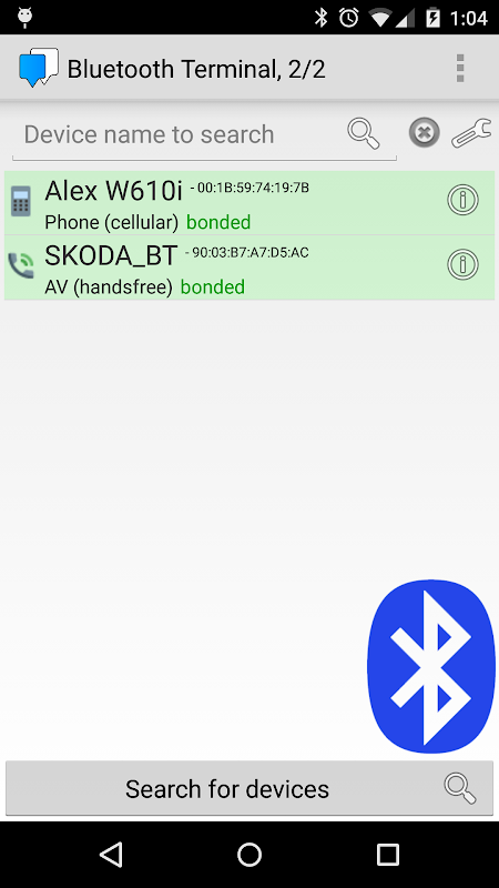 Bluetooth Terminal allows you control and send data to your Bluetooth devices. Application has ability to set predefined commands for most-useful commands, set caret returning symbols, search and discover devices info near the user.