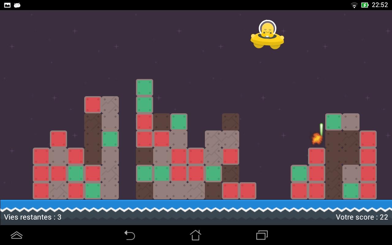 - 触摸屏幕发射导弹。你一次只能射击一个,所以在瞄准首先消除最高的箱子之前必须考虑一下
