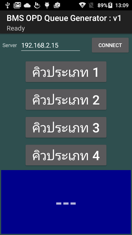 โปรแกรมสำหรับออกคิวรับบริการผู้ป่วย OPD ก่อนส่งตัวเข้าฝ่ายเวชระเบียน ทำงานร่วมกับระบบออกคิวรับบริการใน BMS-HOSxP XE และต้องใช้งานผ่าน BMS Mobile Gateway