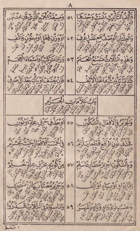 Ilmu Nahwu lebih utama dikaji, tanpanya, Qur’an dan Sunnah tak dipahami. Kitab ini kecil namun yang terbaik Goresan yang lembut, terkenal dan unik. Ulama, besar mengambil manfaatnya dan Rahasia ilmu ada di dalamnya.