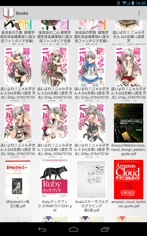 スマートフォンやNexus7などのタブレットで自炊した書籍を読むためのアプリです.