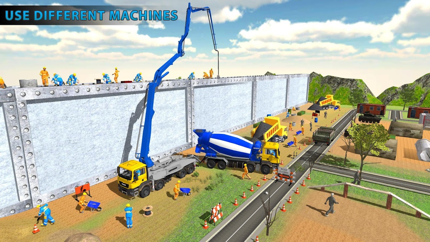 为了安全起见,您必须在边境建立安全墙。在这个机场安全墙上,所有的切割和模拟过程都被划分成不同层次的过境墙。这个边界墙是安全围栏的必要条件。有一道界限墙,但敌人用袭击摧毁了它。所以,市长已经给了你在宫殿安全墙上工作的任务,以免你的家庭免受袭击。第一层混凝土安全墙将打破旧墙。在这个位于以色列西岸的墙上工作时,你必须从推土机处获得帮助。这个家庭安全墙的第二步是在挖掘机的帮助下挖掘该地区。现在,您需要使用住宅安保中的拖放来制作杆结构。那么你应该把结构放在高安全墙的挖掘区域。砾石已经装满中国安全墙的卡车。驾驶这辆卡车并将其带到建筑工地,并将其停放在混凝土搅拌机附近。混凝土搅拌机现在已经准备就绪,您可以在防御性墙体施工策略中填充挖掘区域。在这个巴勒斯坦安全墙的使命中,你必须使用塔式起重机来放置墙体结构。然后在学校安全墙施工中用混凝土填充墙壁。在这个机场安全墙施工任务中,您需要使用移动式起重机来安放塔架结构。用安全墙设计中的混凝土填充塔。门已经在那里把这个大门,并将其放置在pak边墙建设,享受!