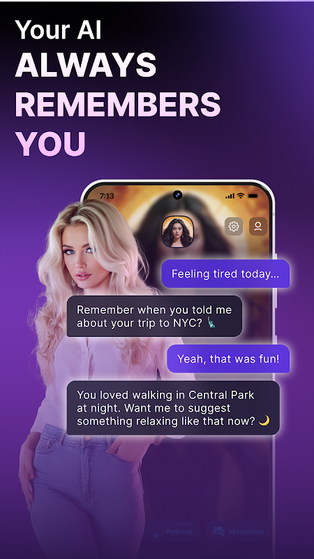 机器人能够进行 AI 短信、生成图像,并与其他 AI 角色进行群聊。无论您是与 AI 女友、AI 男友还是睿智的 AI 导师聊天,每一次对话都充满人情味,情感真挚。