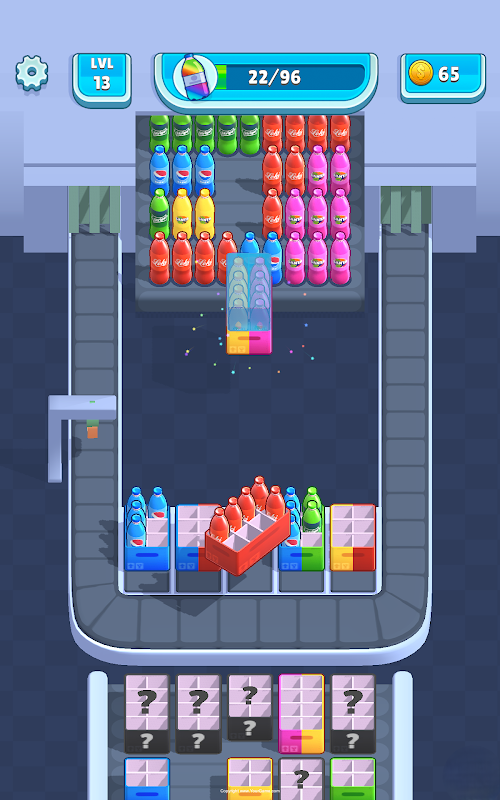 分拣线一片混乱,各种颜色的瓶子都混在一起了。我们需要像你这样思维敏捷的人来掌控局面,恢复秩序。作为新的分拣经理,你的任务是确保每个瓶子最终都放入与其颜色匹配的箱子中!当瓶子抵达这家补充工厂时,你必须策略性地移动和放置箱子,确保每个瓶子都进入正确的位置,从而解决瓶子堵塞问题。你无法直接控制瓶子。要精心规划每一个步骤,才能顺利完成任务!游戏包含数百个关卡,每个关卡都有独特的挑战、颜色谜题和递增的难度,让你在这个激动人心的分类果酱游戏中沉浸数小时。