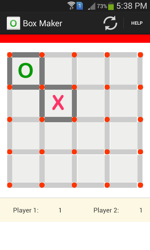 A classic box making game we used to play during school or colleges. It is a two player game played on same device; Player who completes maximum boxes at the end will win. Have fun with your friends.