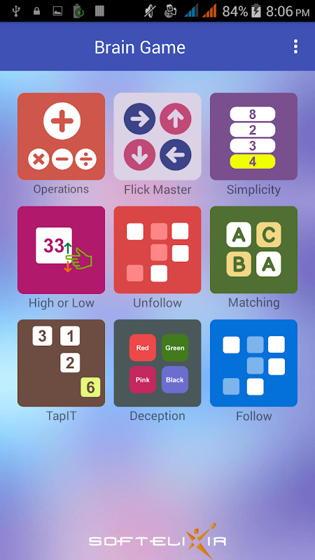 1. Operations game : This game consist of mathematics calculation to improve your skill.This brain games all contains level that increases as the user moves forward.