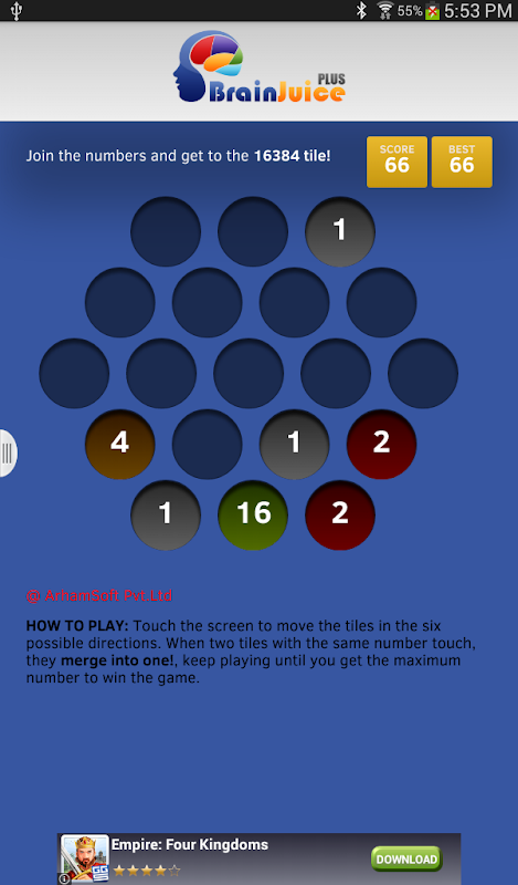 The world is all about numbers! Here comes a game to stir your brain juice with an exciting numbers exercise. It’s fun, it’s easy; just keep combing the same numbers and get a bigger number and then combine the bigger number with the same number and keep improving your score. The higher the score, the better the brain.