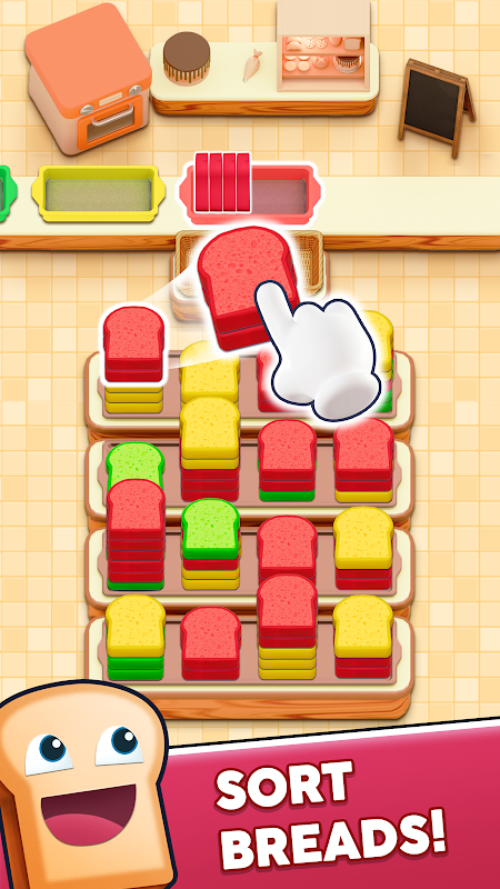 您的目标很简单:点击堆叠的彩色面包片,并将它们分类放入上方正确的托盘中。只有与托盘颜色匹配的面包片才能放入。如果不匹配,它们将被移至等待的篮子中——如果篮子溢出,您将失败。仔细规划您的点击,并保持专注,确保一切尽在掌握。