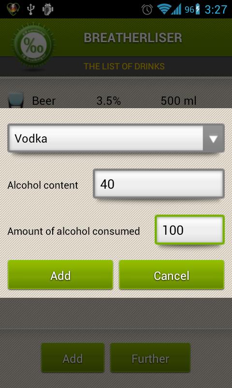 The application is designed mostly for drivers. It allows determining the level of alcohol in blood according to several parameters. It uses Watson’s formula for calculations.