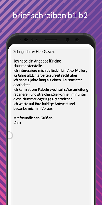Wenn Sie einen formellen Brief schreiben möchten, müssen Sie einige Richtlinien durch dieese App kurz schreiben b1 b2 befolgen。 Übungen für Deutsch als Fremdsprache Niveau A1-A2-B1-B2。 Hier finden Sie Deutschprüfungen für das Sprahniveau Deutsch B2。 Mit diesen Musterprüfungen können Sie sich auf Ihre Deutschprüfung vorbereiten。