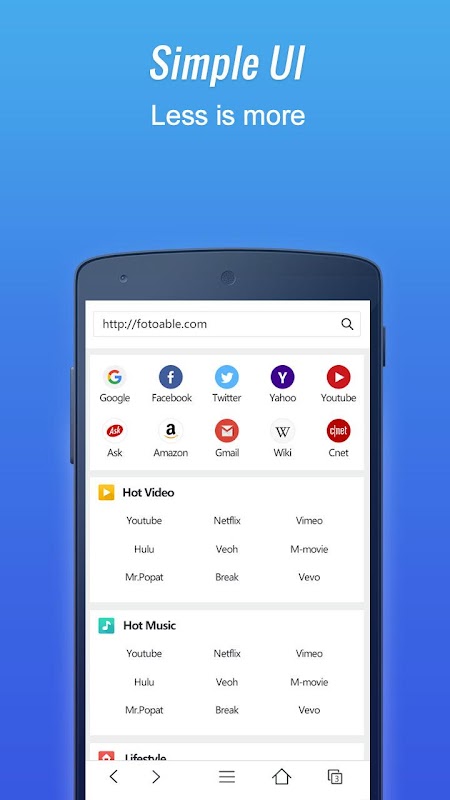 Are you afraid of information leakage? Just try incognito mode, explore any websites you like! No body will know what you have browsed. Protect your privacy. Smart browser!