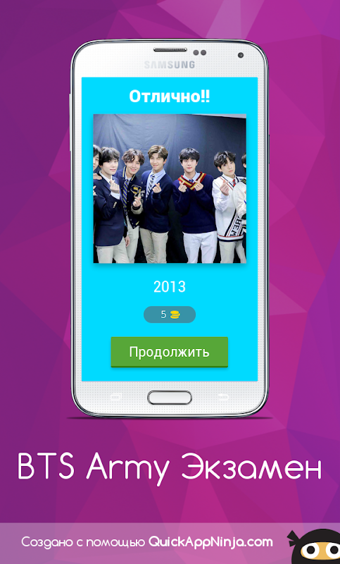 Докажите что вы достойны быть в BTS A.R.M.Y. Узнайте много новой информации о своих айдолах и станьте частью фан группы БТС.