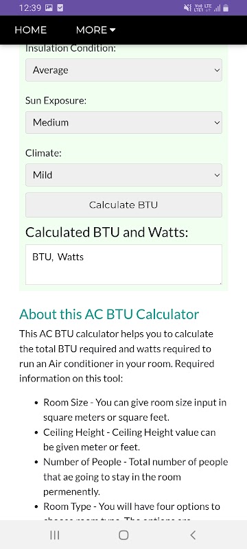 BTU 计算器应用程序是一个简单的能量计算器应用程序,可帮助您计算运行空调或房间内任何其他设备所需的 BTU 或能量。