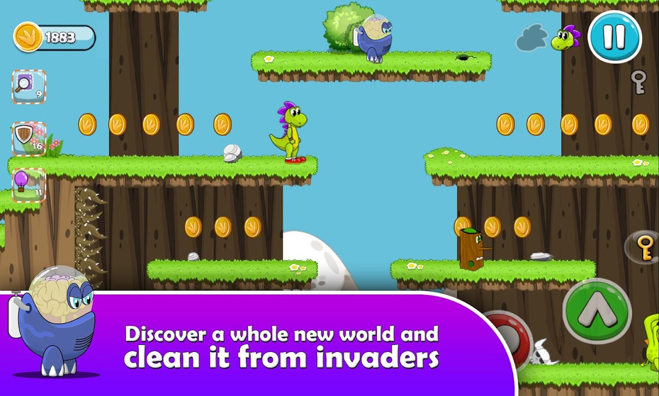 帮助迪诺运用他的超自然力量,将所有外星入侵者困在泡泡中,消灭它们。别担心,你还有一些额外的配件,比如有时可以保护你的盾牌、可以托起你的漂浮气球,以及一个隐藏的步数探测器。