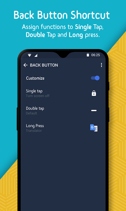 - 将后退操作分配给任何按钮,即音量增大,音量减小或最近按钮