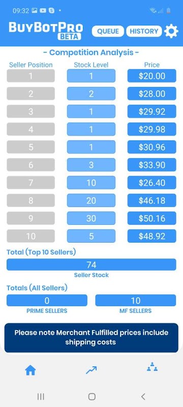 COMPETITION ANALYSIS: See at a glance the Top 10 Sellers, their STOCK LEVELS, and their price!