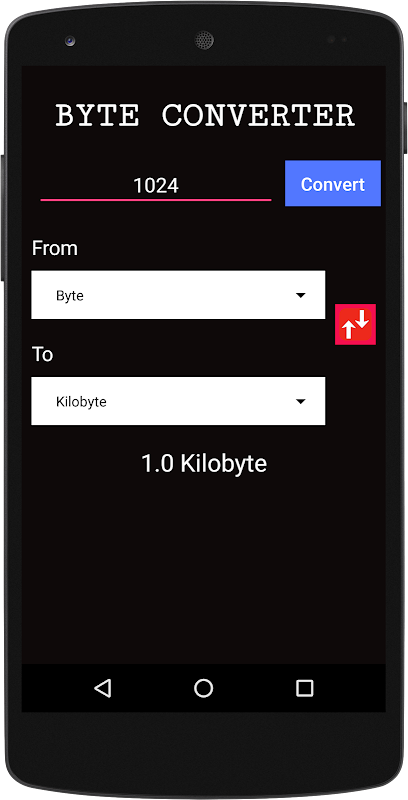 Byte Converter app is convert from bits,bytes,kilobit, kilobytes,megabit,megabytes,gigabit,