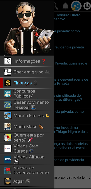 Aplicativo que abrange temas sobre desenvolvimento pessoal masculino,mundo fitness,finanças,cursos e estudos,moda masculina e etc...