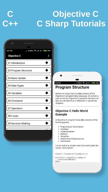 C C++ Objective C and C Sharp Tutorials App provides all this Topic Full information