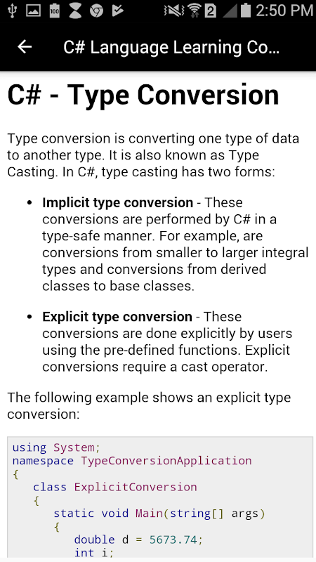 Information related to type conversion covered in C# programs