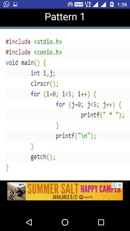 This app is full of pattern and other C programs. In addition to this, there is a lot of study stuff related to C programming as well.