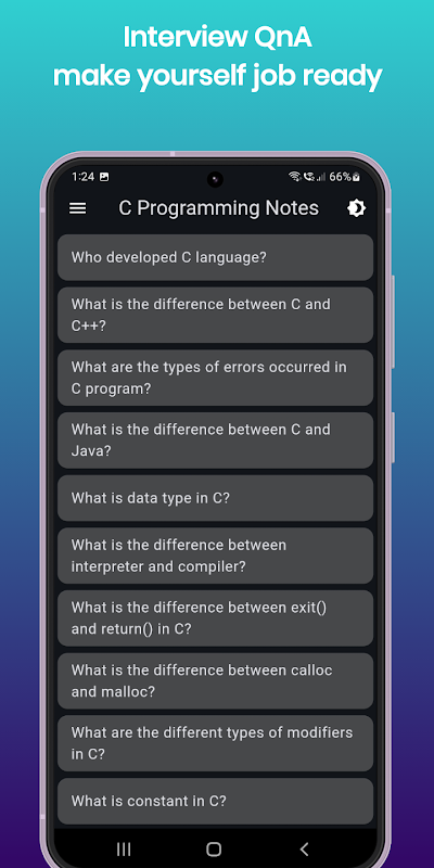 使用C编程语言来培养您的编程技能。通过此最佳的C编程学习应用程序,学习C编程的基础知识或成为C编程专家。通过一站式代码学习应用程序“ C编程说明”免费学习使用C编程语言进行编码。如果您准备参加C编程面试,或者只是准备参加即将进行的编码考试,那么这是您必备的应用程序。