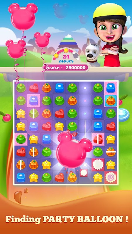 Make striped cakes, jelly blasts, rainbow truffles and other delicacies while solving mind bending puzzles. Less moves you pass a level, higher score you'll get. Try to score high and earn 3 stars on every level Make high scores to challenge your friends and reach the top of this amazing cake world. Unique and delicious dessert set with cake jam,and candy in each levels brings you tons of sweet challenges.