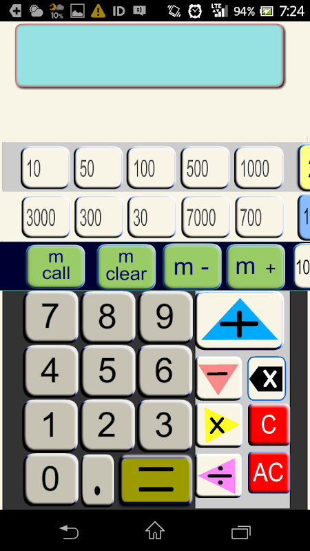 This calc app is (3×, 100+, 4× ,500+ ,2×,10,) with 6 taps .