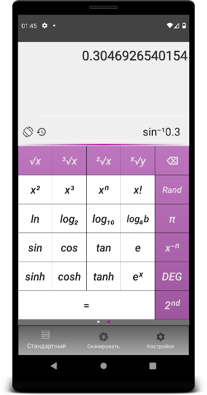 Чтобы запустить инженерный калькулятор, смахните клавиатуру влево, либо нажмите на значок смены ориентации телефона запустив альбомный вид.