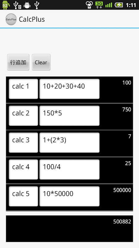 編集欄に数字、*-+/カッコ等を入力して式の結果を表示します。