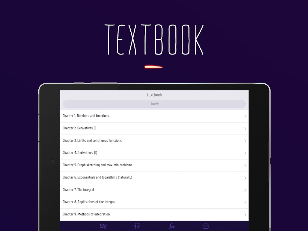 "Calculus" is your personal helper that provides you with all information required. Can you just imagine that with the help of one mobile app you can easily learn calculus reviewing the textbook provided, observing visual explanations and watching video lessons?!